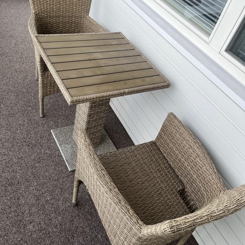 Parvekesetti pöytä ja 2 tuolia harmaa polyrottinki