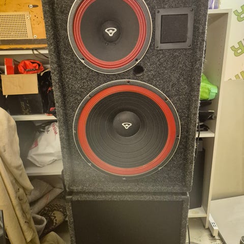 Hyväsointiset Bellin kaksitie bassorefleksi monitorit, Muuten siistit, mutta toisen kotelon yläreunassa pieni painauma joka näkyy viimeisessä kuvassa.
