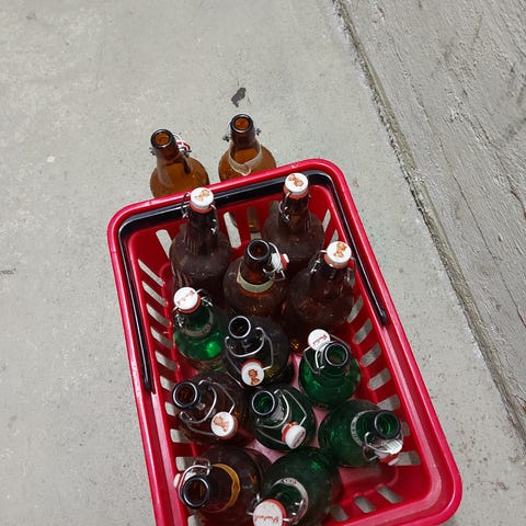 Myydään 10 kpl siistejä lasipulloja patenttikorkilla, vaikka siman tai oluen valmistukseen. Korkki avattava ja uudelleen suljettava. Pullon koko 0,5 litraa. Oluet vastikään juotu, pullot huuhdeltu ja kuivattu, ei muuten käytetty. Hinta kaikille yhteensä.