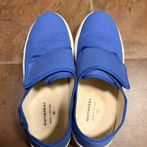 Vähällä käytöllä olleet Marimekon Marka-tennarit koossa 38. Pohjasta näkyy ettei ole olleet montaa kertaa käytössä :)