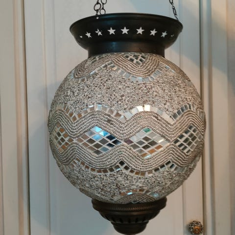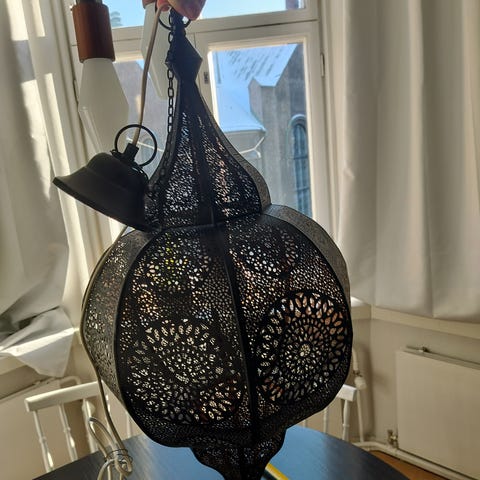 Metallinen marokkolaishenkinen lamppu. Sisällä led. Kaunis ja iso valaisin