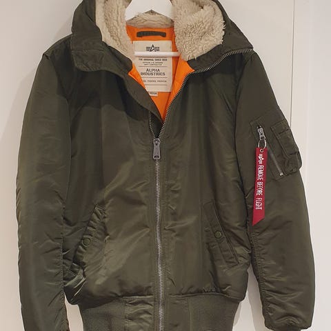 Alphan miesten tumman sininen bomber talvitakki. Hyväkuntoinen, muutaman kerran käytetty. Selän logo heijastinpainatus. Hupun karva lähtee irti.
