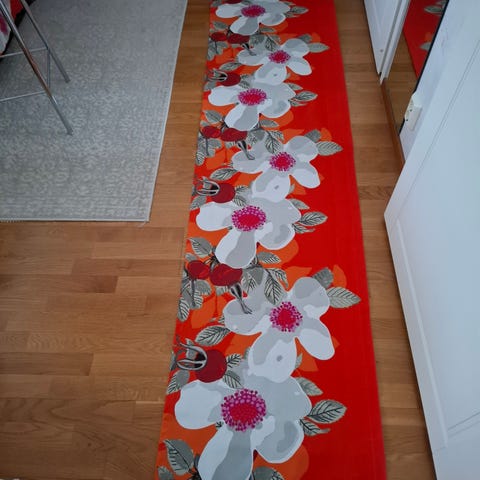 Kappoja on 2 kappaletta. Yhden kapan leveys on 240 cm ja korkeus 58 cm. Kankaassa on 83 % puuvillaa ja 17 % polyesteriä.