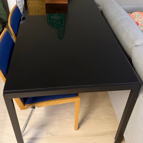 Lasipöytä metallijaloilla. Työpöydäksi/ ruokapöydäksi.