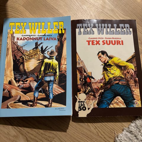 Myyn kunnoltaan kuin uusia Tex Willer suuralbumeita yhteensä 23 kpl. Yhteishinta on 115e tai erikseen otettuna 7e kpl.