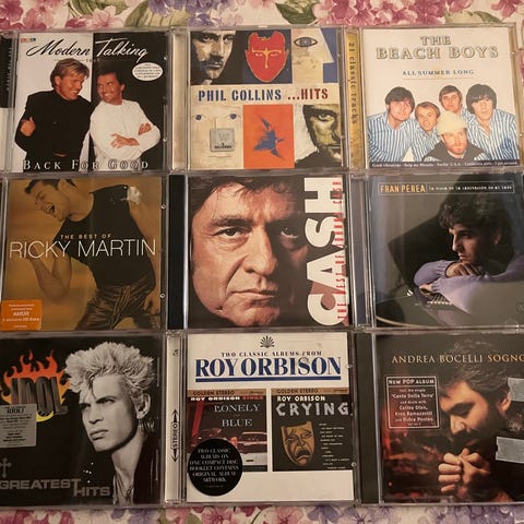 Tarjolla neljä 90–2000‑lukujen pop‑klassikkoa. Levyt ja kotelot siistejä ja toimivia.