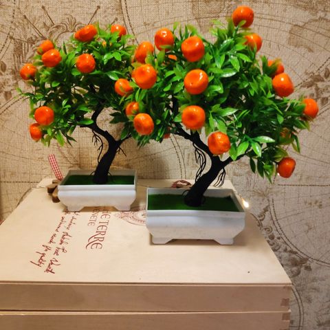 2 Koristeellista koristepuuta helmikoristeilla ja metallijalustalla