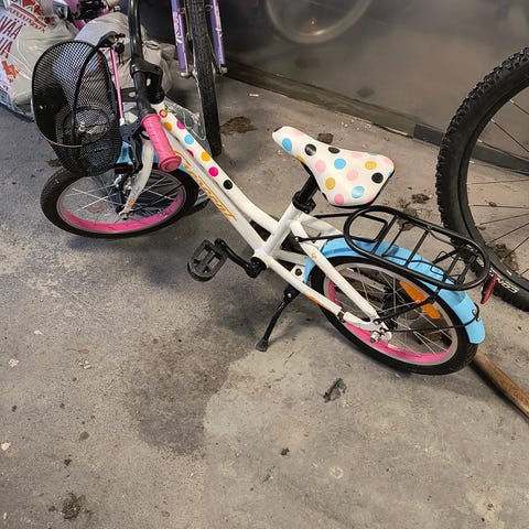 16" Lastenpyörä. Molemmat jarrut käsikahvoissa, helpompi opettaa lapsi polkemaan. On tieten vähän kosmeettisia sanomista mutta sanoisin hyväkuntoiseksi. Ostettu 2023 vuonna uutena ja kuitti löytyy. Vain nouto.