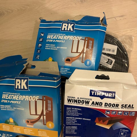 RK Weatherproof TPE-uratiiviste O-profiili ikkunoihin. Pakkauksesta käytetty noin 350 cm eli 6,5 metriä on uutta käyttämätöntä tiivistettä jäljellä.