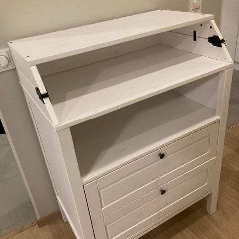 Myydään hyvässä kunnossa oleva Ikea Sundvik hoitopöytä. Ainoat sanomiset on muutama naarmu hyllyissä (näistä kuvat), ei ole vaikuttanut käyttöön.