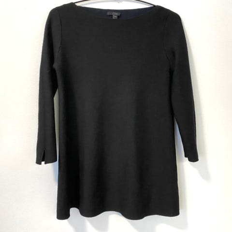 COS neule naisille, koko XS. Todella tummansininen, melkein musta kietaisumallinen villasekoiteneule, jossa vyötärölle solmittava nauha. Materiaalina villa. Pitkät hihat ja V-pääntie. Koiratalous.