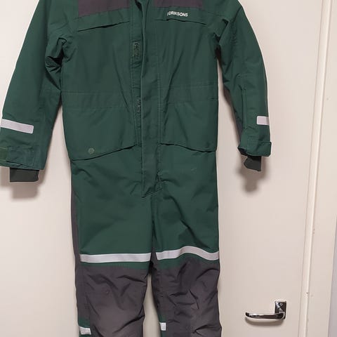 Didriksons lasten haalari, unisex-malli, koko 130 cm. Väri oranssi tummilla vahvikkeilla polvissa ja takapuolessa. Materiaalina Gore-Tex-tyyppinen vedenpitävä ja hengittävä kuorikangas. Haalarissa on etupuolella kaksisuuntainen vetoketju, useita taskuja sekä heijastinyksityiskohtia hihoissa ja lahkeissa. Selässä on joustoresori paremman istuvuuden vuoksi. Hupussa on irrotettava tekoturkisreunus. Lahkeensuissa on kiristysmahdollisuus ja lumilukot. Sopii ulkoiluun ja leikkeihin erilaisissa sääolosuhteissa. Vain nouto ja käteis maksu. Ei eläintalous.
