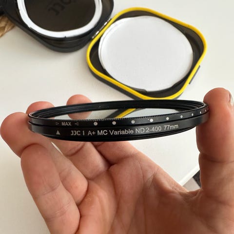 Laadukas ja naarmuton harmaasuodin (ND-filtteri) 77mm halkaisijalla. Himmentää noin kuuden aukon verran kuvaa. Ostettu Kamerastoresta pari vuotta sitten 75€ summalla, eikä ole käyttöä enää kun vaihdoin linssiin jossa isompi halkaisija.