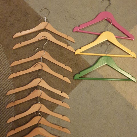 Seuraavan pienen vaatteille Ikean puiset henkarit/vaateripustimet. Siistikuntoiset.