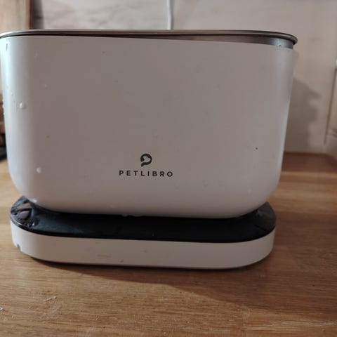 Catit kukkavesiautomaatti on lemmikin juoma-automaatti, jossa on vihreä kansi ja valkoinen säiliö. Yläosassa on irrotettava kukkiosa, jonka avulla veden virtausta voi säätää.
