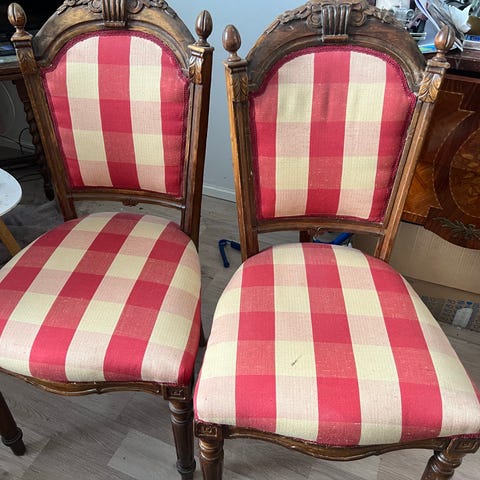 Puinen ruokapöydän tuoli verhoillulla istuimella 6 kpl