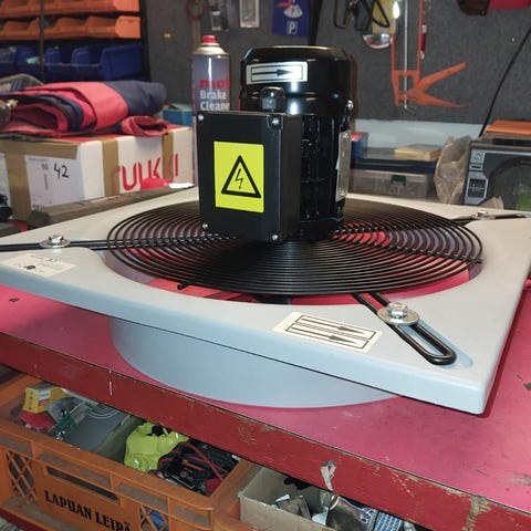 Vähän käytetty, ja vain vähän pölynen uutta vastaava aksiaalipuhallin integroidulla EC-moottorilla. Varustettu neliönmuotoisella seinälevyllä ja suojaverkolla. HyBlade-siipipyörän ansiosta puhallin on erittäin hiljainen, kevyt ja energiatehokas.
