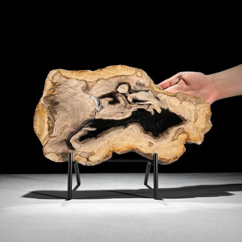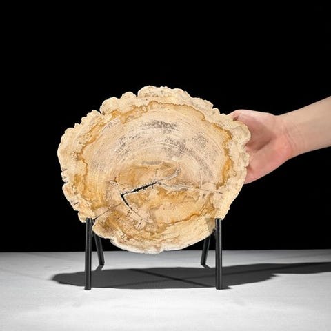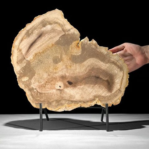 Upea suuri pala fossiloitunutta puuta räätälöidyllä jalustalla.Petrified Wood on mineraalinen pala puuta, joka on muodostunut, kun puut kaatuivat ja peittyivät maaperän tai hiekan kerrokseen. Usein tämä tapahtuu luonnonkatastrofin seurauksena. Petrified Woodin värit riippuvat maaperän tai hiekan mineraaleista. Jokainen mineraali luo oman värinsä. 'Petrifikaatio'-prosessi varmistaa, että kaikki ominaisuudet, kuten solmut, kuori ja vuosirenkaat, säilyvät. Mahdollinen kaukaisen menneisyyden mätänemisprosessi voi johtaa upeisiin kristallimuodostelmiin, usein monivärisinä.Noin mitat - jalustan kanssa# Korkeus: 40 cm , Leveys: 48 cm, Viipalepaksuus: 1.7 cmNoin mitat - ilman jalustaa# Korkeus: 36 cm, Leveys: 48 cm, Viipaleen paksuus: 1,7 cmVastuuvapauslausekeOle hyvä ja huomioi, että yksi kuvista on otettu pimeässä studiosta, ja värit voivat vaihdella ympäristön mukaan.Paino, joka mainitaan, sisältää pakkausmateriaalin.LähetysKohde lähetetään seurantanumerolla DHL Parcelin, DPD:n tai postNlin kautta. Seuranta päivittyy Catawiki-luettelossasi, kun pakettisi on jätetty postiin.Ole hyvä ja tarkista säännöllisesti välttääksesi pakettisi palautumisen meille, jolloin ostaja vastaa toisen lähetyksen toimituskuluista.Seurantaan Espanjaan ja Portugaliin käytä tätä linkkiä ja lisää Catawiki-erästäsi saatu seurantanumero.https://clientesparcel.dhl.es/LiveTracking/HomeME EMME YHDISTÄ TOIMITUKSIA!!!Jos sinulla on kysyttävää paketistasi, ota meihin yhteyttä Catawiki-viestipalvelun kautta. Pyrimme vastaamaan kolmessa työpäivässä.