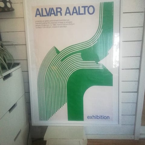 Vepsäläisen Aallon tuolia esittävä juliste 50*70cm. Ei ole ollut käytössä. Reunassa pieni rispaantunut, joka ei kehyksessä näkyne.