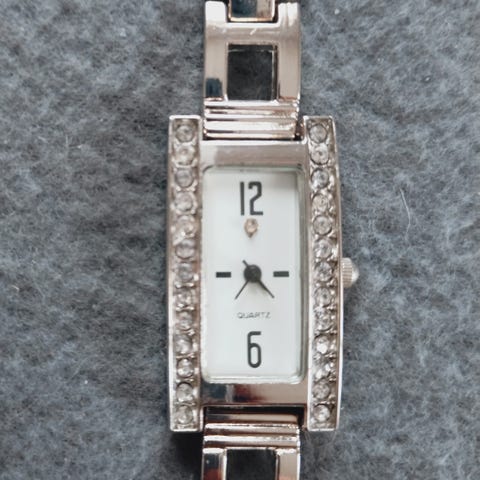 Naisten rannekello, jossa suorakaiteen muotoinen kellotaulu ja metallinen joustava ranneke. Kellotaulussa arabialaiset numerot ja kolme osoitinta. Kuori ja taulu hopeansävyisiä, yksityiskohdissa kullan sävyä. Sopii ranteeseen joustavan linkkirannekkeen ansiosta ilman erillistä lukkoa. Toimii perinteisenä analogisena rannekellona arki- ja juhlakäyttöön.