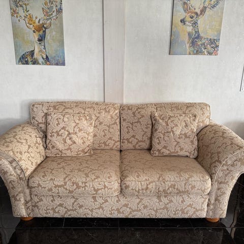 Jyskista ostettu kahden istuttava sohva 2-3 vuotta sitten, hyvässä kunnossa, ei ole ollut paljoakaan käytössä.