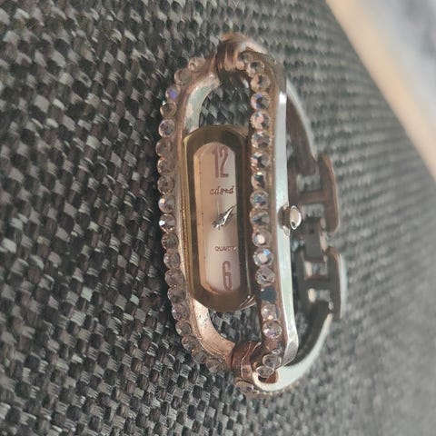 Naisten rannekello vaaleansinisellä taululla ja teräsrannekkeella.