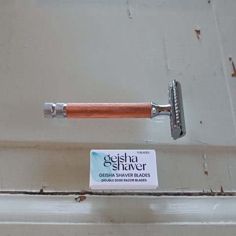 Myydään uusi geisha shaver + terät. Teriä noin 45kpl.