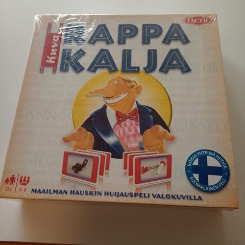 Vielä muoveissa oleva eli siis korkkaamaton Rappakalja-lautapeli.