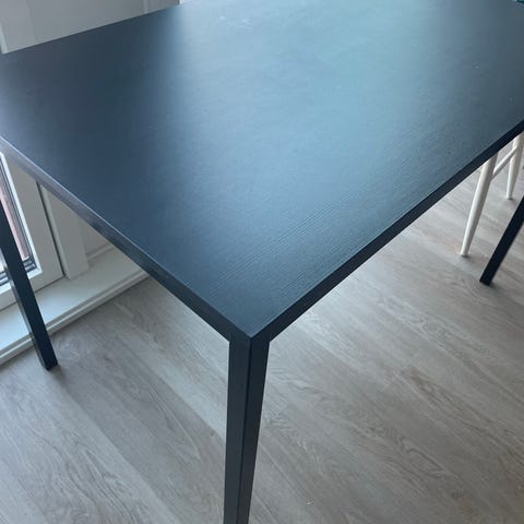 Musta IKEA:n ruokapöytä 6 hengelle.