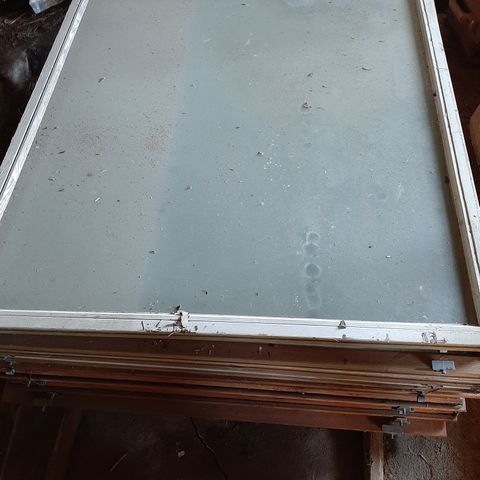 Käyttämätön tuplaikkuna neljällä lasiruudukolla, puu-/metallikehyksellä. Koko karmeineen 49x49, lasin koko 33cm, kokonaispaksuus 19,5cm