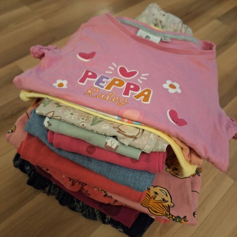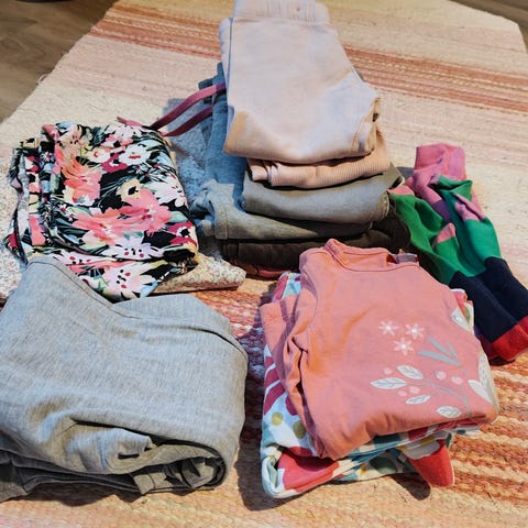 🤍housuja, pitkähihaisia, t paitoja,mekkoja, huppari, yökkäri + 4 ulkoilu takkia (syys,talvi jne) sekä kuratakki ja housut