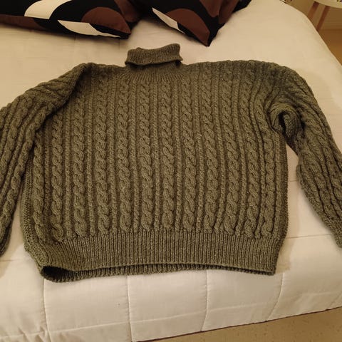 Kauluksellinen villaneule. 100-prosenttista villaa. Koko m. Miesten malli, mutta klassinen malli käy myös naisille. Mitta kainalosta kainaloon 60 cm. Pituus 68 cm.