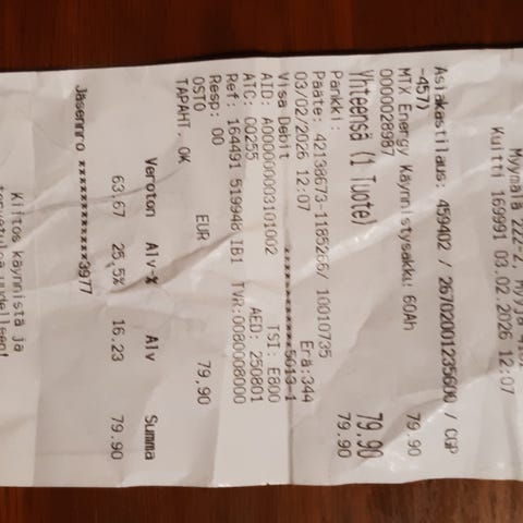 Kuvan akku jäänyt varastoon, kun auto meni romuksi syksyllä. Todella hyvä akku, ja luulen että tällä pärjää vielä pitkään.