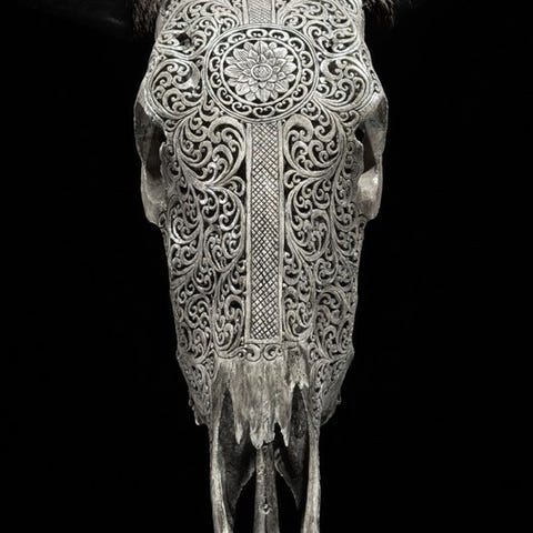 Ei vähimmäishintaa - aito harmaa härän pääkallo - iso lootoskuvio. Kaiverr