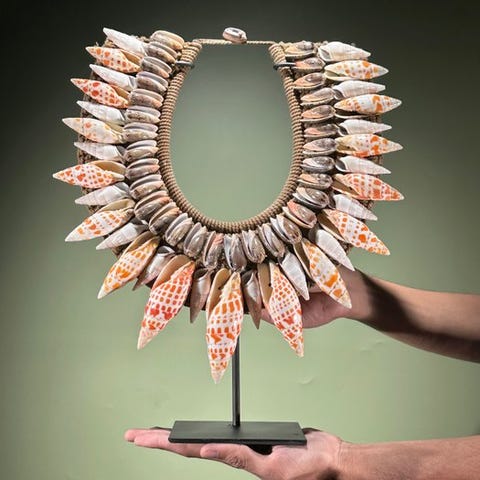Koriste-esine - SN5 - Decorative shell necklace on a custom stand -