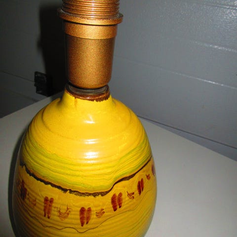 Upea, erittäin koristeellinen ja tyylikäs barley twist -pöytälamppu. Kappale on kauniisti suunniteltu ja valmistettu erinomaisella laadulla ja yksityiskohdilla. Käsin kaiverrettu lamppujalka on ajalle ominainen ja sen alkuperäinen patina on hieno. Olemme sitä mieltä, että esine on kokonaisuudessaan hyvässä alkuperäiskunnossa.Mitat: kokonaiskorkeus 51 cm, pohjan halkaisija 16 cmKattovalaisin 14 cm korkea, halkaisija 23 cm.Tuote lähetetään rekisteröidyllä lähetyksellä.