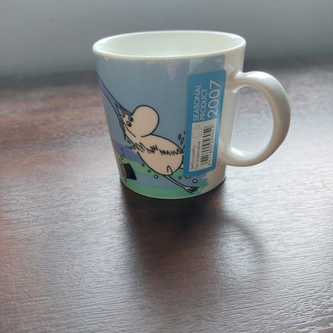 Myydään muumimuki Delfiinisukellus vuoden 2007 kesäsesonkituote. Muki on virheetön, kaikki pinnat erinomaisessa kunnossa.