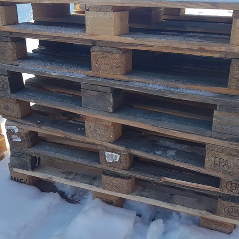 Käytettyjä muovilavoja vaikkapa polttopuiden alle.