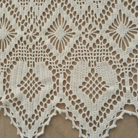 Viti valkoinen käsin virkattu pitsi kappa 105 cm puuvillaa