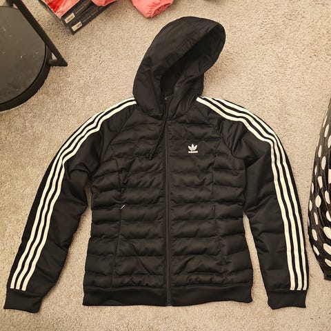Adidas naisten talvitakki, koko 40. Väri vaaleanpunainen. Takissa on huppu ja vetoketjukiinnitys.
