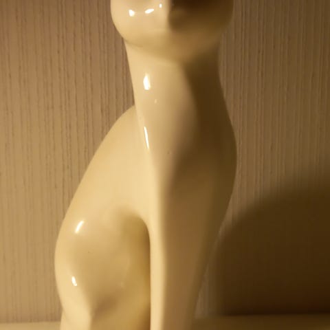 Koristekissoja 8 kpl erikokoisia Isosta pikkuruiseen Savi posliini, 1 kissapullo