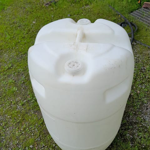 Muovinen valkoinen tynnyri, jossa kierrekorkillinen sulkuaukko yläosassa. Soveltuu esimerkiksi nesteiden tai muiden materiaalien varastointiin ja kuljetukseen. Materiaalina kova muovi, tynnyri on sylinterinmuotoinen ja se voidaan säilyttää pystyasennossa lattialla tai seinää vasten. Tilavuus 200 litraa. Sisältänyt pesuainetta.
