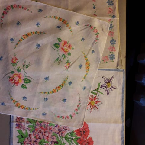 1940/50 lukua puuvillaiset nenäliinat.Pieni tahra. 7€+5€ tai yhteensä 10€