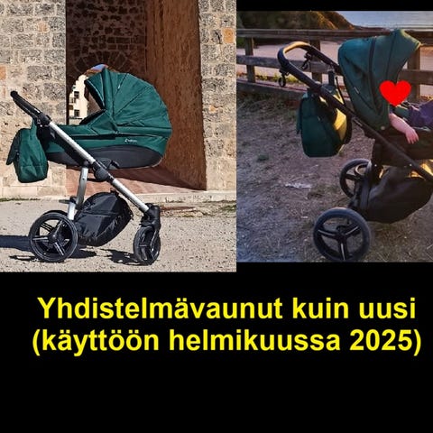 • Paketti sisältää: Runko, kantokoppa, ratasistuin, hoitoreppu, tavarakori, hyttysverkko, sadesuoja ja jalkapeite.