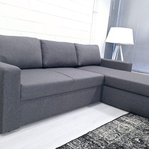 Sohva on hyväkuntoinen. Juuri pesty runkoa myöden. Runko on tukeva. Divaanin alla löytyy säilitystila. Savuttomasta asunnosta (ei tupakoitu sisällä). Divaanin puolta voi vaihtaa. Mitat Leveys 240cm syvyys 90cm divaani 160cm vuode 140x200cm.