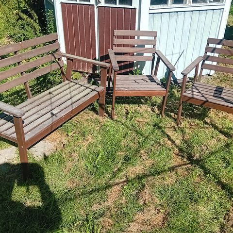 Parvekekalustesetti, johon kuuluu valkoinen suorakaiteen muotoinen pöytä ja kaksi valkoista tuolia. Tuoleissa on käsinojat ja vaaleat istuintyynyt. Materiaalina on muovirottinki tai vastaava säänkestävä materiaali, joka soveltuu ulkokäyttöön esimerkiksi parvekkeella tai terassilla. Pöydän kansi on laudoitettu ja runko on metallia tai muuta tukevaa materiaalia. Setti tarjoaa istumapaikat kahdelle hengelle.