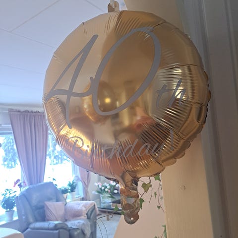 Juhlakoristeeksi ilmalla täytettyjä n jalkapallon kokoisia palloja. Kestänevät pulleina vielä tulevan viikonlopun.
