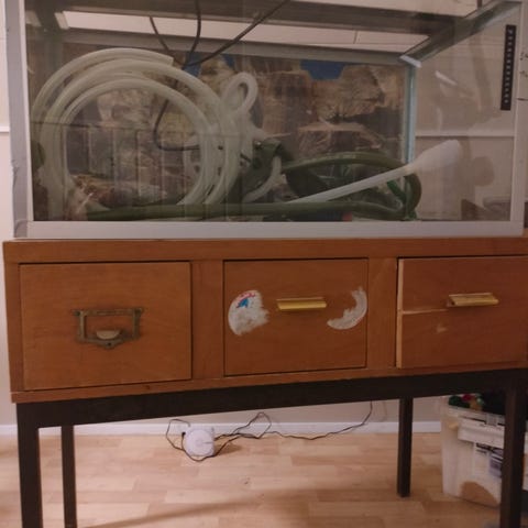 Lasinen akvaario, jossa suorakulmainen allas ja musta taustarakennelma. Mukana tulee erilaisia akvaariotarvikkeita, kuten ulkosuodatin, lämmitin, virtalähde, koristeita sekä hoitoaineita. Sopii makean veden kalojen tai muiden vesieläinten pitoon tai esimerkiksi terraariokäyttöön, kunhan koko ja tilavuus tarkistetaan omaan tarkoitukseen sopivaksi.