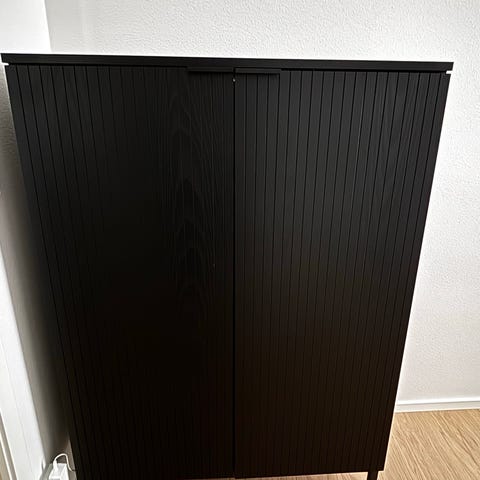 Tyylikäs uudemman tuotannon moderni kaappi myytävänä. Ovet kiiltävänmustat ja toimivat hyvin. Runko ehjä. Yleiskunto hyvä. Pieniä käytön jälkiä löytyy. Ei hajuja.