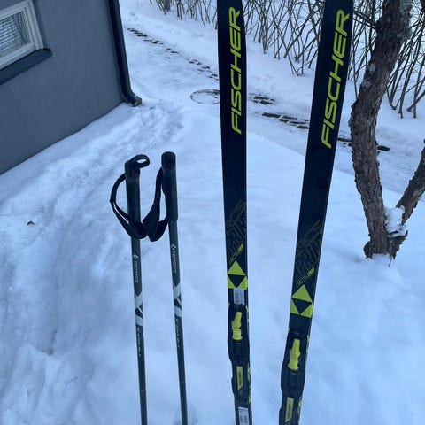 Fischer ACS Sprint Crown lasten maastohiihtosukset ja monot. Suksissa on pitopohja (crown-kuvio) ja pituus 150 cm, sivussa merkintä 150/630. Suksissa on siteet, jotka sopivat mukana oleviin monoihin. Monot ovat sinivalkoiset ja kokomerkintä on 33. Setti soveltuu lapselle maastohiihtoon perinteisellä tyylillä.